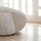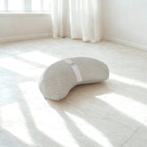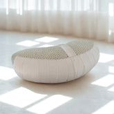 Cuscino zafu a mezzaluna da meditazione realizzato a mano con tessuto riciclato naturale di alta qualità.